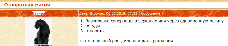 | Добрый день. Подскажите пож-та, где эти обряды - блокировка соперницы в зеркалах и через одноименную могилу? В поисковике они не появляются.