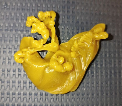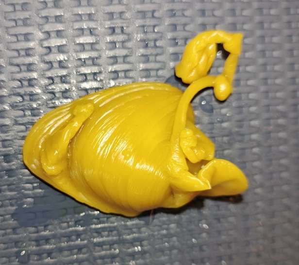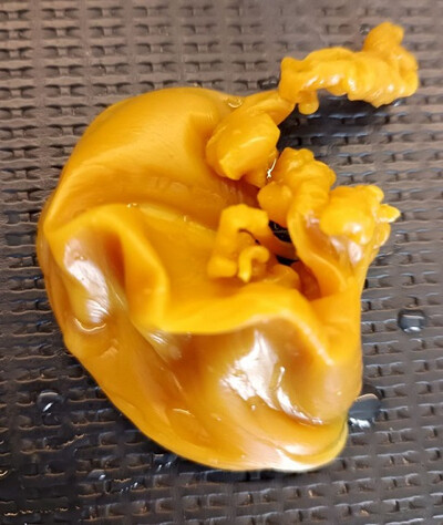 |  Мне очень знакома такая форма отливки. Не знаю, что у вас диагностируется, но так, практически всегда, отливалась ворующая сущность. Космосущность, эгрегориальная, или искуственная. Обычно плотно сидит на теле, или поле, сливается. Когда работает на человека, то ему с ней хорошо, ворует для него, когда он член секты, группы, ордена и тд. И наоборот с человека, тогда работает как блокировка, подавление воли. Момент запечатленный на отливке похож, что сущность сорвало с человека магической работой, или процессом отливки и часть энергии, что она "насосалась" возвращается человеку. Этот момент, в большинстве случаев, сопровождается приподнятым энергетическим состоянием, а в редких - временной болью различной интенсивности, типа невралгической, мигрени, "туманом" в голове. Я не ошибся?
